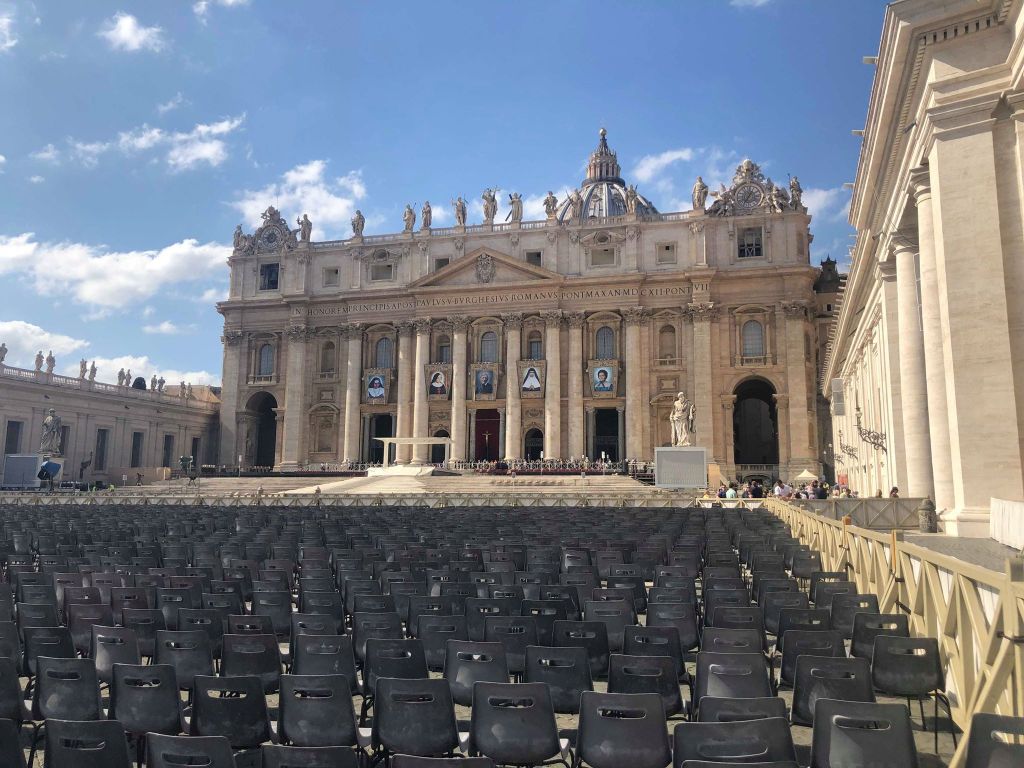 Basílica de São Pedro se preparando para o ritual de canonização.