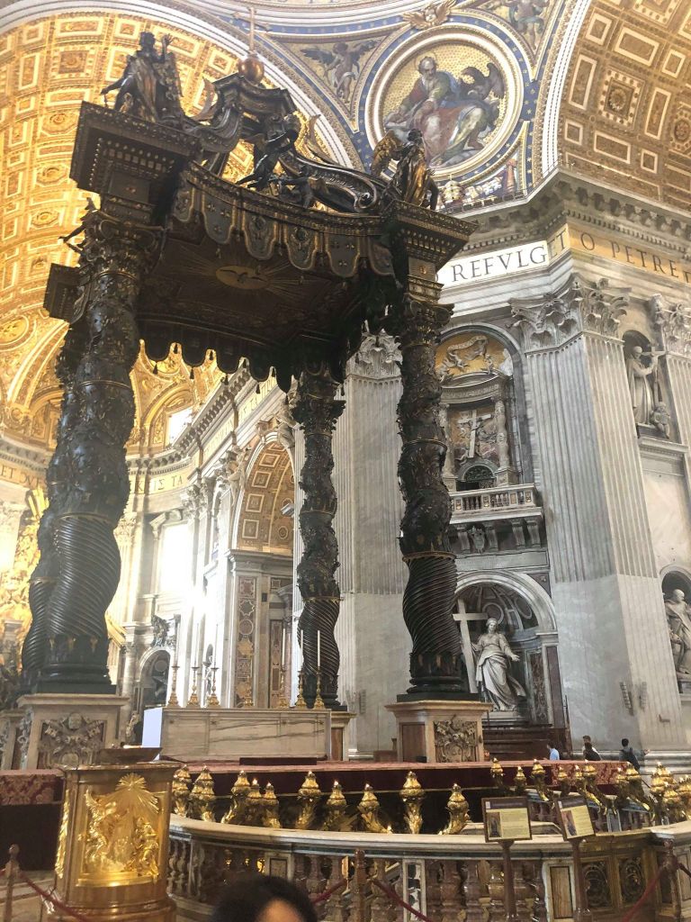 Depois do Museu do Vaticano, fomos para a Basílica de São Pedro. A Basílica é a igreja do Papa e abriga a Santa Sede. Todas as quartas-feiras ele realiza a audiência papal, sua missa da semana. No resto do tempo, a Basílica tem visitação gratuita.