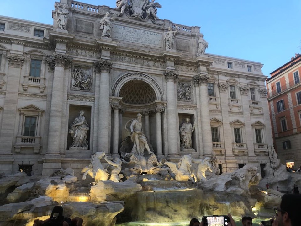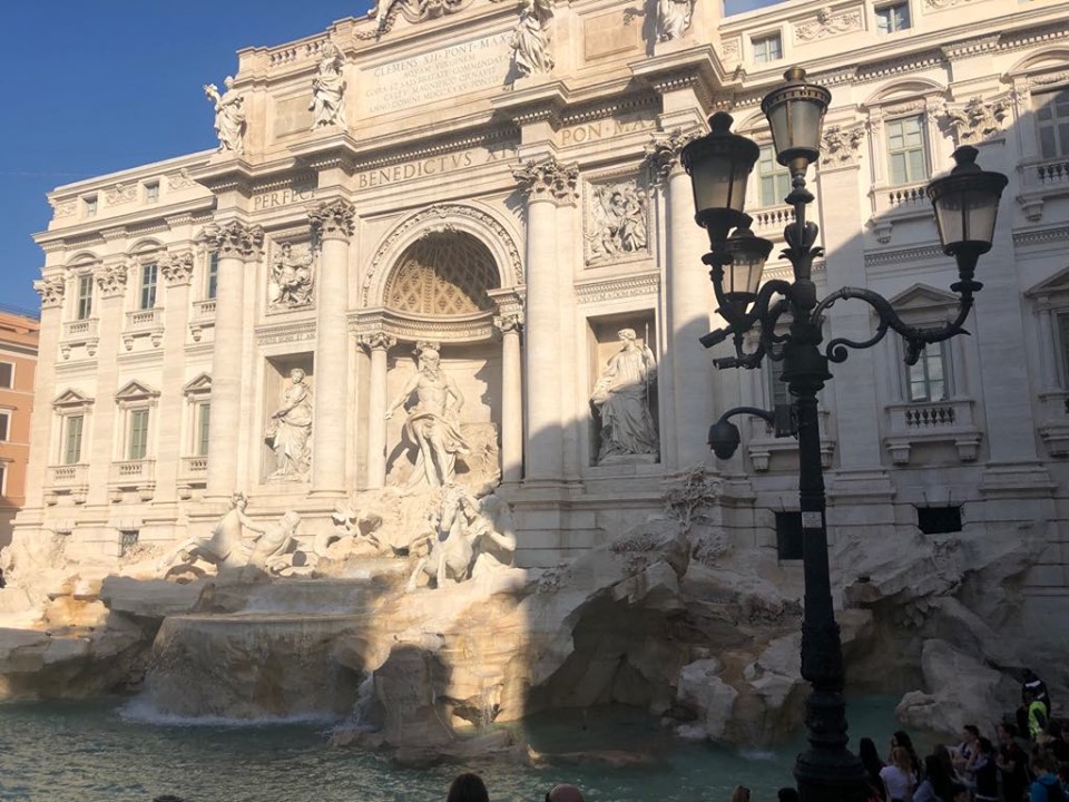 A Fontana de Trevi, como conhecemos hoje, foi desenhada e projetada por Nicola Salvi e inaugurada no ano de 1762. Ela é a maior fonte de Roma, com 20 metros de largura e 26 metros de altura. Mesmo assim, foi difícil tirar fotos já que todos os lugares estavam ocupados por turistas. Mas vale muito a pena visitar, já que a Fontana é linda e uma das fontes mais famosas do mundo.