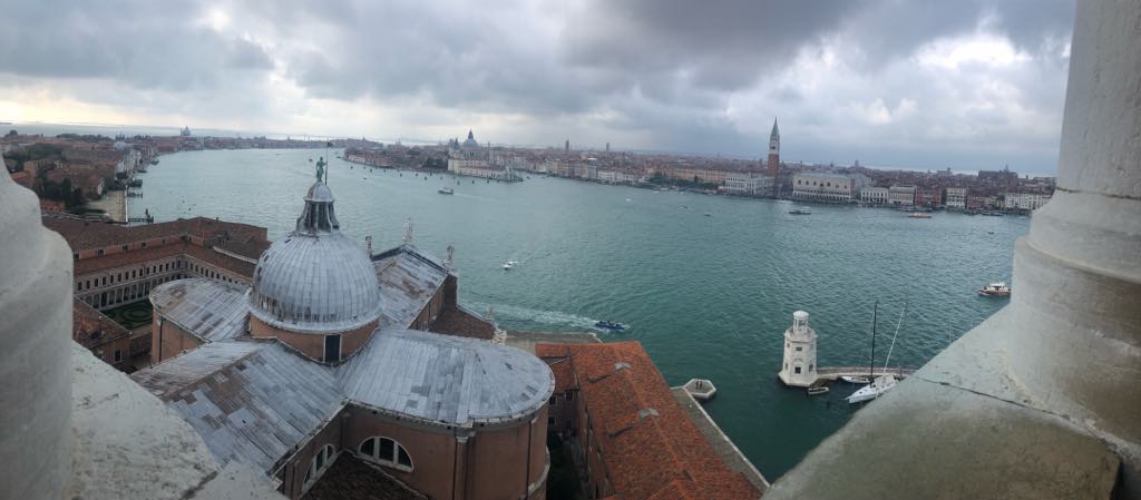 De lá, pegamos um transporte público e fomos até a Ilha de San Giorgio Maggiore. É uma ilha pequena mas, em sua igreja, podemos ter uma das melhores vistas da cidade.