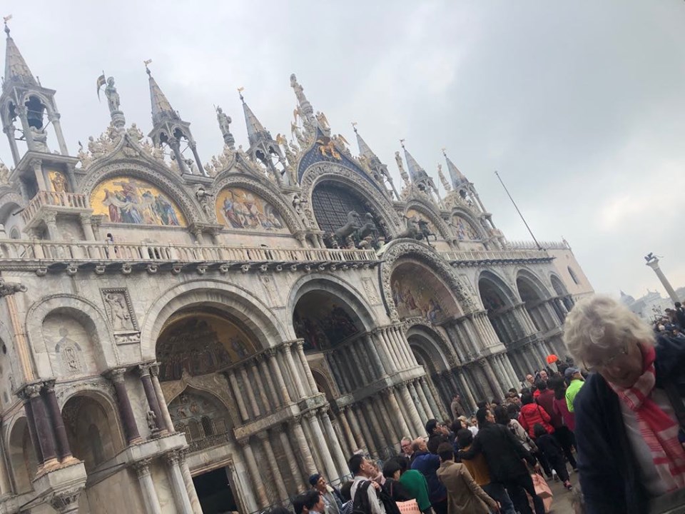 Depois, visitamos a Basílica de San Marco, cuja construção começou no ano de 828, e que é a principal igreja da cidade. Ficamos encantadas com o interior dourado da Basílica, mas infelizmente não visitamos o museu do local.