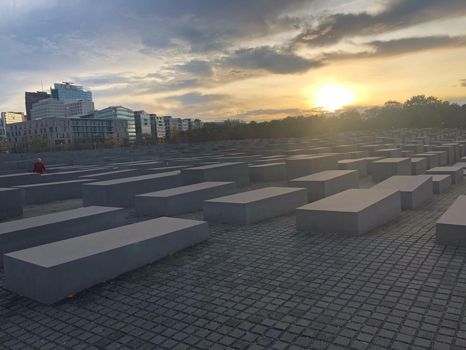 Passamos também pelo Portão de Brandemburgo, antiga porta da cidade, inaugurada em 1791. Estava tendo uma grande manifestação ali, mas não tínhamos ideia do que se tratava, então fomos para a Kurfürstendamm, a principal avenida comercial de Berlim. No meio do caminho, caminhamos pelo Memorial aos Judeus Mortos da Europa.