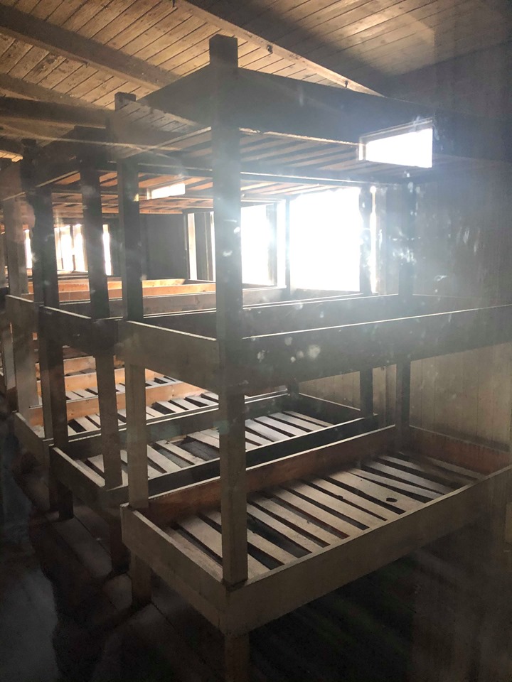 Logo na entrada do campo (muito depois da entrada do espaço de visitação), você encontra um portão com os dizeres “Arbeit Macht Frei” (“O trabalho te fará livre”). Passando por ele, é que você consegue ver o grande campo de concentração. Grande parte dos pavilhões foi demolida, mas outros pavilhões ainda se mantêm.