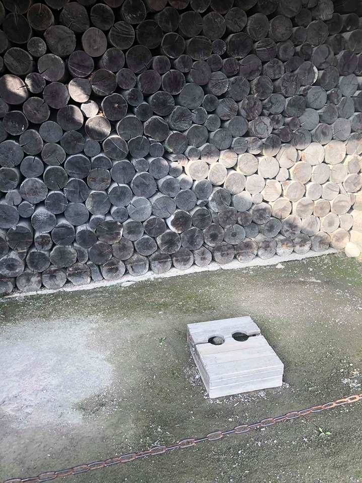 Visitamos também a cozinha, que tem parede com a pintura original e preserva os banheiros e o galpão onde os presos dormiam. Vimos o paredão de fuzilamento e os crematórios.