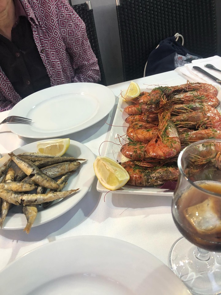 Ficamos a tarde toda lá, descansando, e depois paramos em um restaurante para comer. Eu pedi uma porção de camarão e minha mãe uma de peixe, mas as duas porções eram enormes e foi difícil comer tudo.
