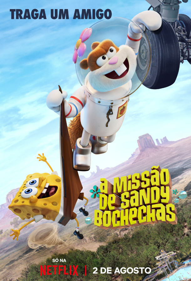 O filme que escolhi para este mês é A missão de Sandy Bochechas. Nele, a Fenda do Biquíni é retirada do oceano, deixando ali apenas a Sandy e o Bob Esponja. Então, eles partem para o Texas para salvar seus amigos.
